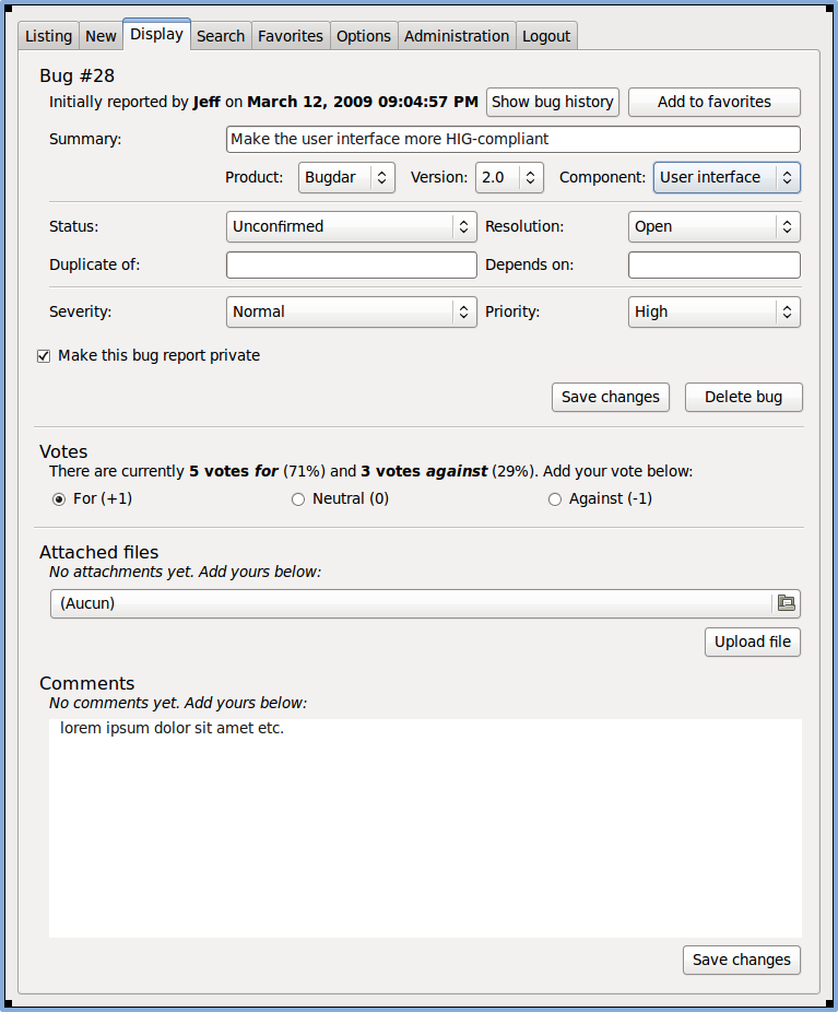 I would like to help you by providing some advice on ui design and usability. I'm quite versed in the GNOME (and to some extent, Apple) user interface design guidelines [1][2], and I have (re)designed tons of desktop application user interfaces. I would like to provide a cleaner look for Bugdar. I will attach an initial mockup of what the "Bug display" page could be made to look like.