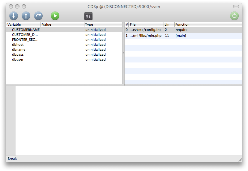I've been having a lot of problems with previous versions of MacGDBp so I don't use it too often. I just tried again and updated to version 1.3.0. Immediately on start I see some text corruption in the variable list and in the code pane.