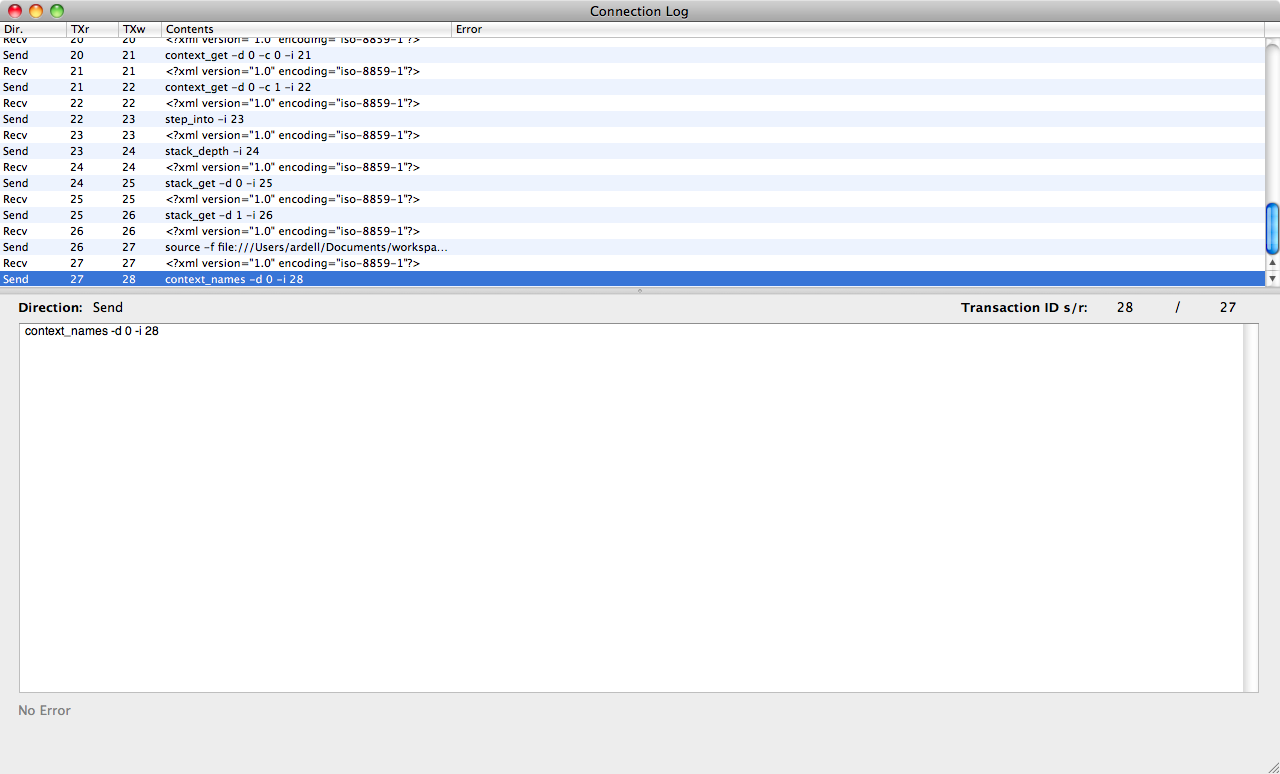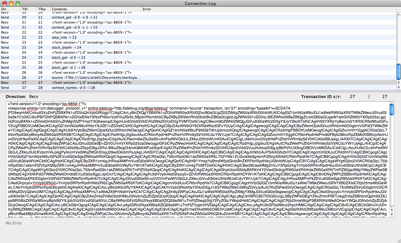 At this point, MacGDBp logs the following: